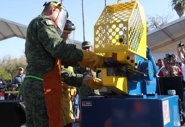 Este martes en el municipio de Reynosa fueron destruidas mil 628 armas derivadas de los decomisos encabezados por elementos de la Sedena, Semar y Policía Estatal. Este acto contó con la presencia de
