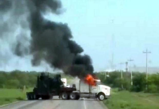 Un tráiler que transportaba maquinaria, fue utilizado para bloquear la carretera Reynosa-San Fernando en el kilómetro 70, impidiendo el paso en ambos sentidos de la ruta federal. Los hechos fueron r