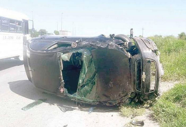 REYNOSA, Tamaulipas.- De milagro resultó con vida el conductor de un automóvil particular que se volcó en las inmediaciones del puente Pharr, luego de que una de las llantas traseras se le despre