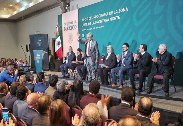 Reynosa,04/01/19.- El presidente Andrés Manuel López Obrador y el gobernador Francisco García Cabeza de Vaca dieron inicio al programa de la Zona Libre en la Frontera Norte donde se aplicarian, ent