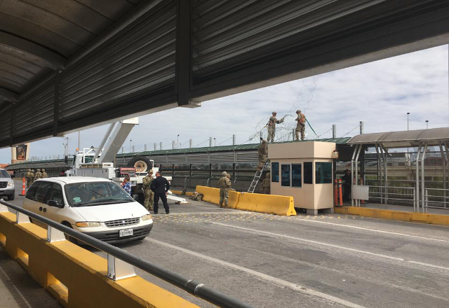 Reynosa, 02/10/18.- Elementos de la Guardia Nacional de Estados Unidos continúan realizando prácticas de entrenamiento, en espera de los miles de migrantes que viajan desde Centroamérica hacia Esta