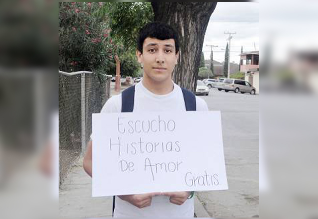 9/11/2016 - Río Bravo, Tam..- Un caso especial es la acción que ha tomado un joven estudiante de escuchar públicamente las historias de amor de quienes así lo deseen, en su propósito de en futur
