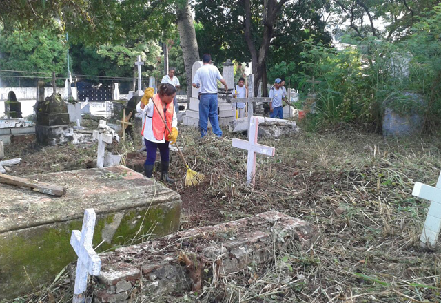 10/05/2016 - Río Bravo.- Apresuran trabajos de limpieza en panteones locales, y tenerlos listos este 10 de mayo, Día de las Madres, en que cientos de familiares visitan las sepulturas, donde ya hac