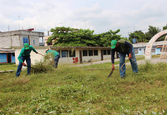 11/08/2015 - Río Bravo, Tam..- Al clamar colonos de la Ampliación Estero por limpiar área recreativa invadida de maleza, autoridades locales dieron respuesta en emprender acciones y exterminar la