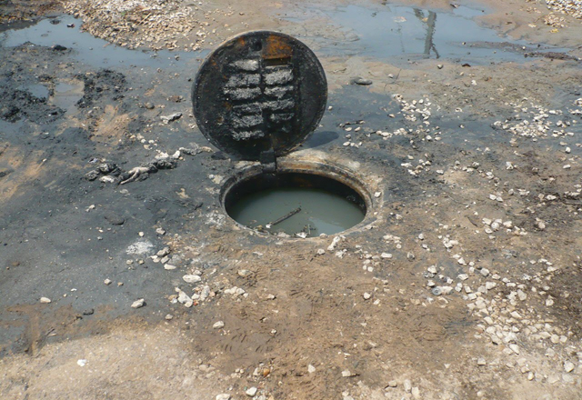 Agencia/Río Bravo(3/02/15).- Ante lo inservible de drenaje sanitario en amplio sector, brotan aguas negras en principal arteria que divide las colonias Ampliación Estero y Ampliación Juárez Uno. F