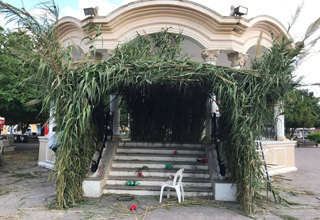 Avanzados trabajos de altar de muertos en la plaza principal