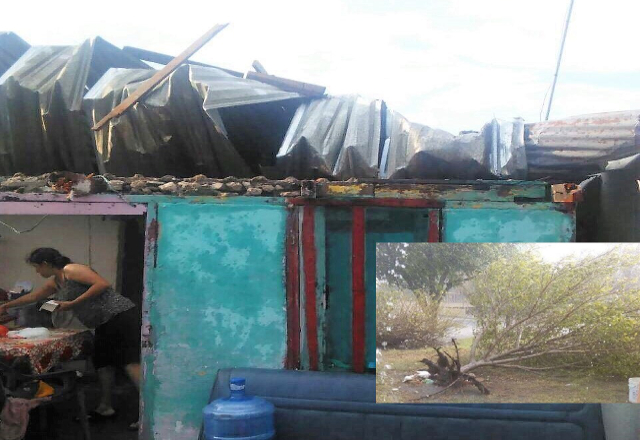 28/09/17.- La tarde del sábado una especie de tornado, acompañado de lluvia y granizo, causó daños en el ejido Palos Blancos, situado a 75 kilómetros, al norte del municipio, arrancando árboles,