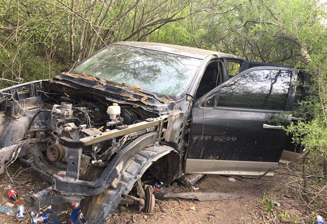 05/09/2017.- A disposición del agente del Ministerio Público Investigador se encuentran las dos camionetas que contaban con reporte de robo y que fueron localizadas abandonadas sobre una brecha aled
