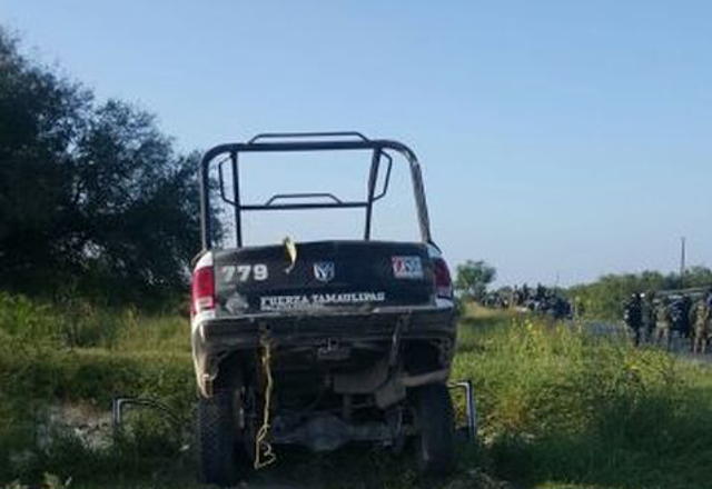 San Fernando, 09/08/17.- En Tamaulipas, en el municipio de San Fernando murieron en persecución dos presunto criminales, iba a bordo de una camioneta de reciente modelo Dodge con placas de Texas, has