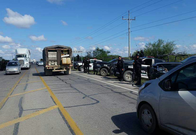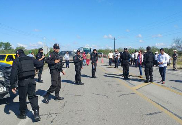 16/11/2016 - San Fernando, Tam.- Más de 100 elementos de la Fuerza Tamaulipas arribaron al puente Las Barreras en unas 17 camionetas oficiales y procedieron a desalojar a los productores agrícolas