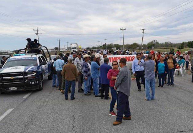 Campesinos bloquean carretera Victoria-Matamoros en San Fernando