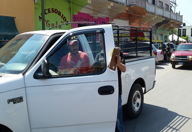26/11/15.- Oficiales de la Policía Militar en apoyo al personal de vialidad realizan operativos en forma sorpresiva en diversas calles de la cabecera municipal, para aplicar infracciones a los conduc