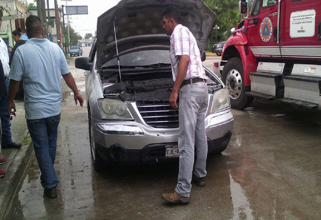 31/10/15.- Daños parciales valuados en 12 mil pesos, al incendiarse parcialmente un vehículo Chrysler Pacifica, a consecuencia de un corto en el sistema eléctrico del tablero y la destrucción de u