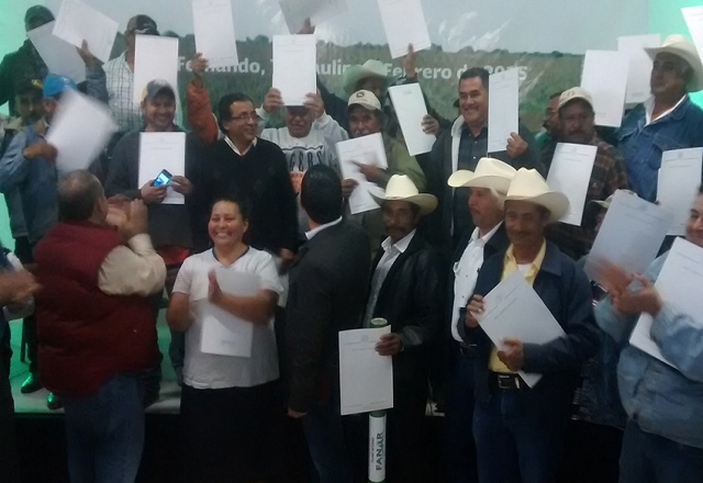 28/02/15.- Un total de 53 ejidatarios de Praxedis Balboa en este municipio, recibieron certificados parcelarios y de uso común, en el marco del evento organizado por la Procuraduría Agraria con la f