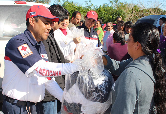 11/02/15.- Con acciones efectuadas dentro del Plan Invernal 2015 que desarrolla la Cruz Roja Mexicana se hizo entrega de 450 paquetes consistentes en cobija, chamarra o suéter, bufanda y juguete en b