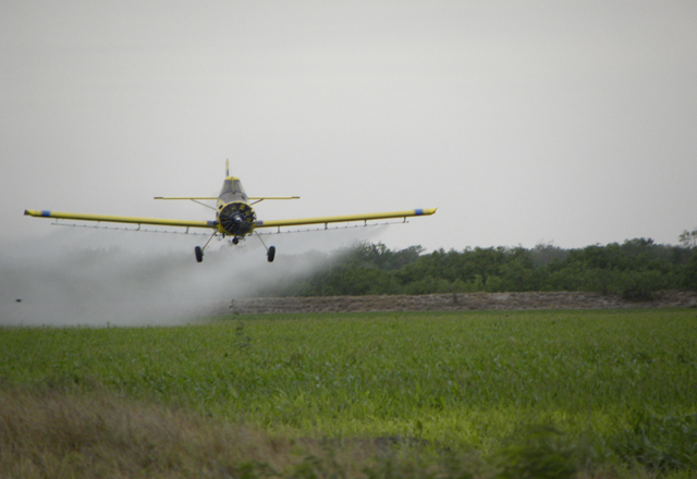 27/04/15.-Con la llegada del tiempo de aplicación de foliares en los cultivos del sorgo y del maíz también se reanudó la actividad de fumigación aérea en unas dos mil hectáreas en la región ag