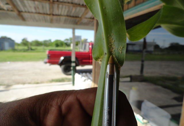 30/04/15.-La temible plaga del pulgón amarillo ya se encuentra presente en nuestra zona apenas iniciando su desarrollo, por lo que se recomienda a los productores de sorgo de la región estar alertas