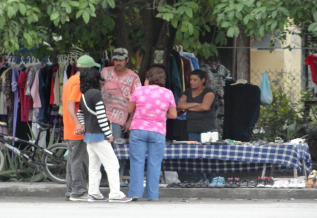 20/04/15.- Margarita Patiño Villanueva, residente de la colonia Unión al poniente de la ciudad, es una de las vendedoras de tianguis que se apostaron en la calle Juárez a la altura de la avenida Am