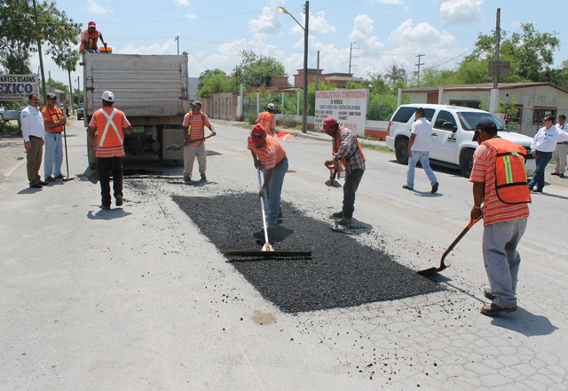 Cuadrillas de trabajadores de Obras Públicas llevan a cabo el bacheo en la ciudad. Las pasadas lluvias registradas ocasionaron el deterioro en la carpeta asfáltica de las principales avenidas, daño