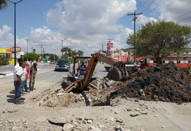 19/09/2017.- Trabajadores de la Comisión Municipal de Agua Potable y Alcantarillado de Valle Hermoso mantienen atención permanente en la reparación de caídos de sistema de drenaje de la ciudad. Ac