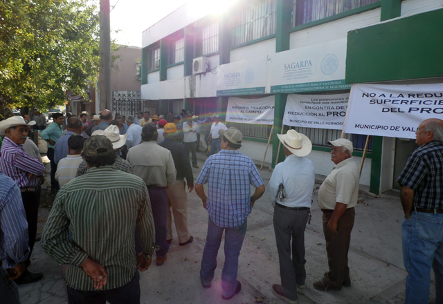 4/11/2016 - Un numeroso grupo de productores de la defensa del ProAgro e Ingreso Objetivo el día de ayer a las 9 de la mañana cerró temporalmente las oficinas de la Secretaría de Agricultura, Gan