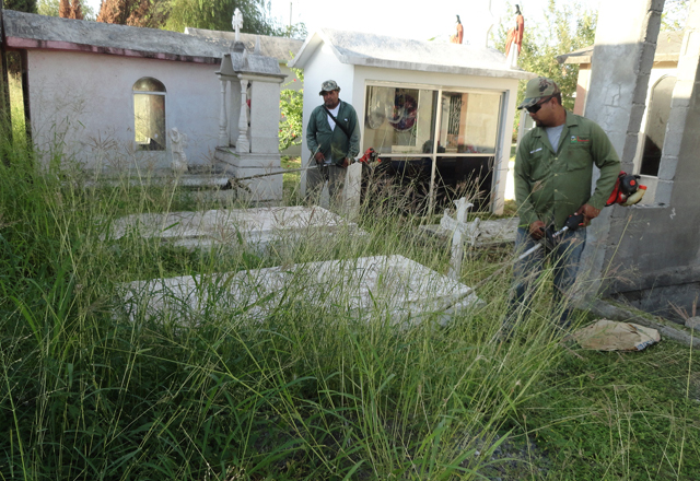 21/10/2016 - Intensa actividad de limpieza se está llevando a cabo en estos momentos de parte de cuadrillas de trabajadores de Servicios Primarios en los panteones Antiguo y "Azael Valdés". Día de