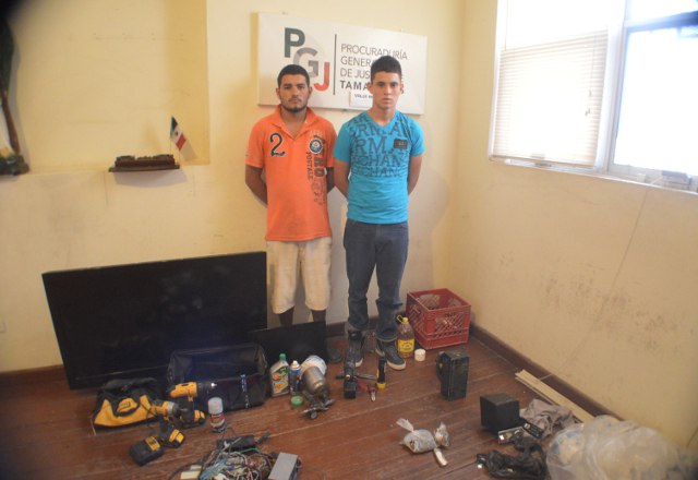 4/08/15.- Peligrosa banda de ladrones domiciliarios fue desarticulada por agentes de la Policía Ministerial del Estado Grupo Valle Hermoso que detuvieron a dos de sus integrantes y les aseguraron un