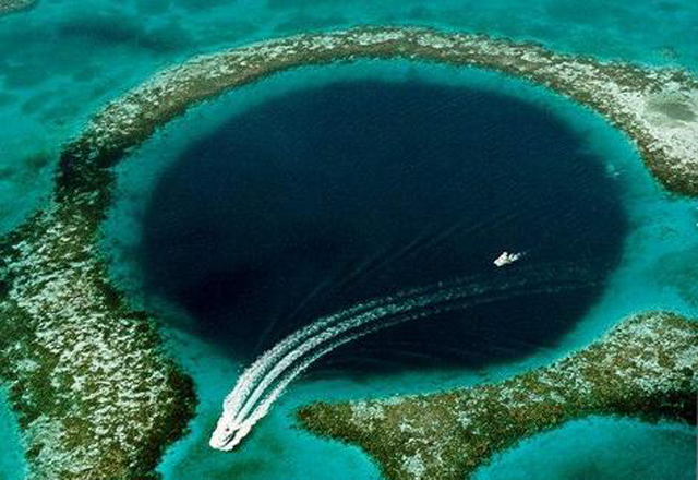 El Gran Agujero Azul está ubicado en el arrecife Lighthouse, un atolón a 100 km de la costa de Belice, que tiene 300 metros de ancho y 123 metros de profundidad. Originalmente era un sistema de cuev