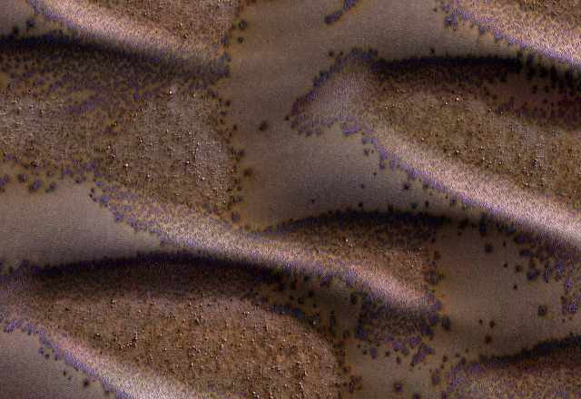 7/06/16.-La Agencia Espacial de Estados Unidos (NASA), reveló este martes una imagen en la que se muestran los efectos del descongelamiento de las dunas de arena que cubren la mayor parte de ese terr