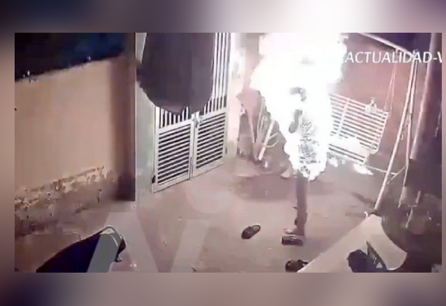 Fue una cámara de seguridad de la vivienda la que logró captar el momento exacto en que el sujeto incendia a su esposa con un encendedor Una acalorada discusión entre una pareja resultó en una tra