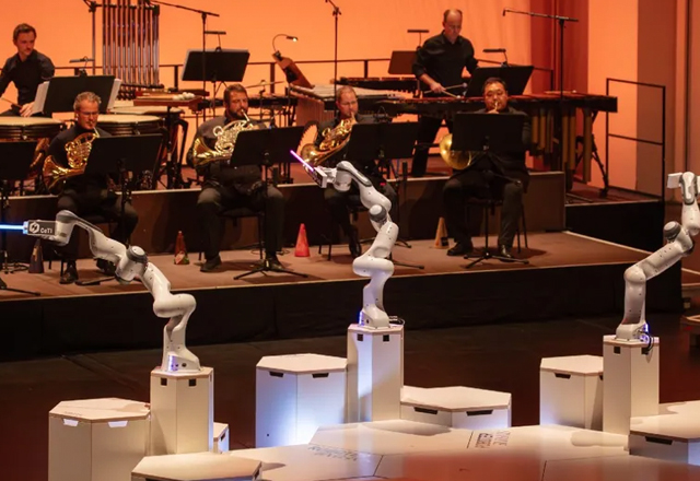Un robot de tres brazos, programado para replicar los gestos de un director de orquesta humano, realizó su debut en Dresde, Alemania Un robot de tres brazos entrenado para imitar a un director de orq