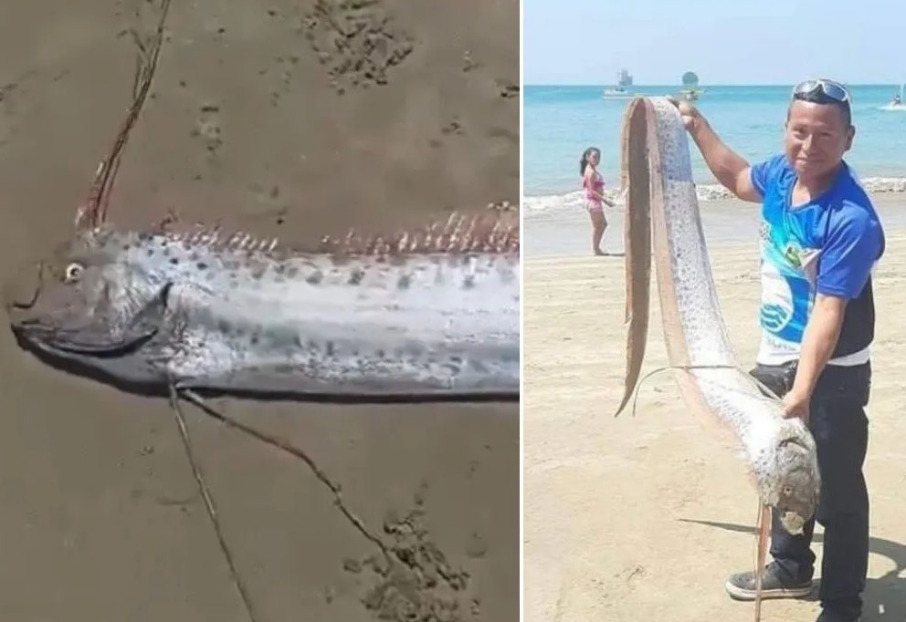 Ecuador.- Un temible pez remo de tres metros de largo apareció varado en una playa turística de Salinas, Ecuador, causando asombro y preocupación entre los turistas y residentes locales. El inusual
