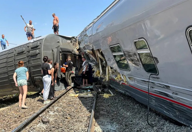 Al menos dos personas murieron y hasta 100 resultaron heridas el lunes cuando un tren de pasajeros que transportaba a 800 personas chocó con un camión Kamaz, descarrilando ocho vagones, informaron m