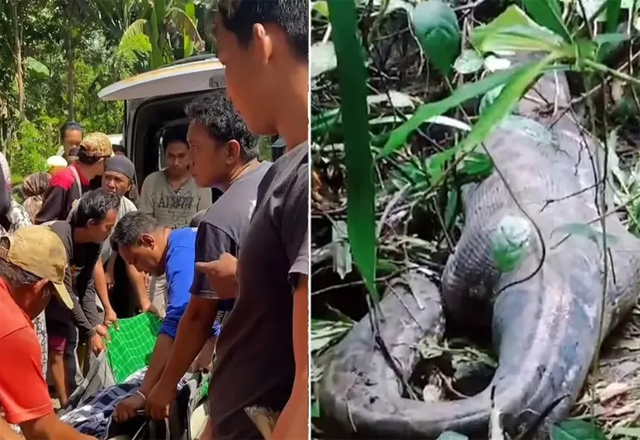 El cuerpo de Farida, de 50 años, fue encontrada en el vientre de una pitón gigante después de que su familia la reportó como desaparecida en Sidrap Regency, Sulawesi del Sur, Indonesia. De acuerdo