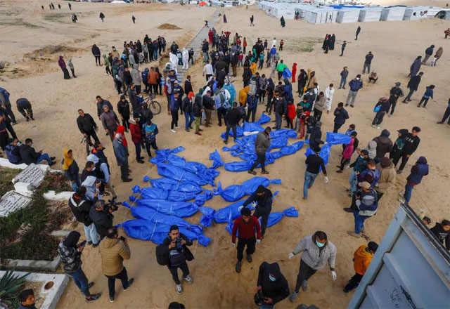 Unos 150 cadáveres fueron enterrados en el patio del hospital Naser, el más importante del sur de la Franja de Gaza, en medio del asedio que mantiene desde hace días el Ejército israelí, pese a q