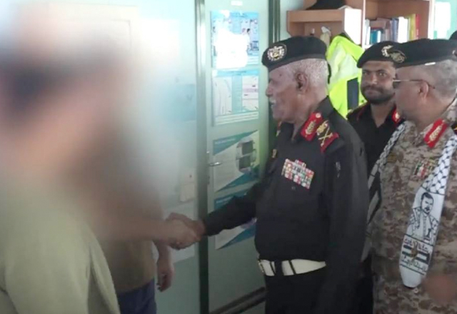 El comandante de las fuerzas navales hutíes, Muhammad Fadhel Abdulnabi, recorrió este miércoles el carguero 'Galaxy Leader' incautado por el grupo rebelde en el Mar Rojo y se le vio intentando tran