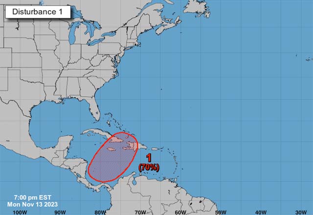 La zona de inestabilidad detectada desde la semana pasada y que está ubicada frente costas orientales de Honduras, Nicaragua, Costa Rica y Panamá, tiene una alta posibilidad del 70 % para formación