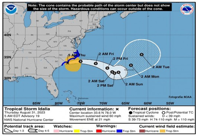 Perry.- La tormenta tropical Idalia recorría este jueves las Carolinas en su camino hacia el océano Atlántico, dejando un rastro de inundaciones y destrucción en el sureste de Estados Unidos desde