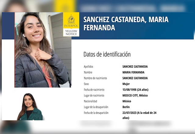 La Organización Internacional de Policía Criminal (Interpol) emitió la ficha amarilla de búsqueda internacional para localizar a la joven mexicana María Fernanda Sánchez, desaparecida en Berlín