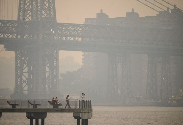 Nueva York, Estados Unidos.- Los intensos incendios forestales en Canadá están cubriendo de una bruma distópica el noreste de Estados Unidos, volviendo el aire acre, el cielo de un gris amarillento