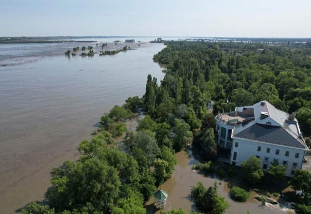 Las autoridades impuestas por Rusia en la localidad ucraniana de Nueva Kajovka declararon el estado de emergencia en la ciudad tras la ruptura de la estructura superior de la presa y la inundación pa