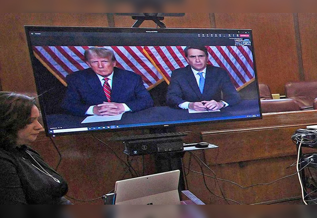 El expresidente Donald Trump compareció por video conferencia ante el tribunal de Manhattan que lo juzga por 34 delitos de fraude, sobre los cuales le prohibieron este martes divulgar en redes social