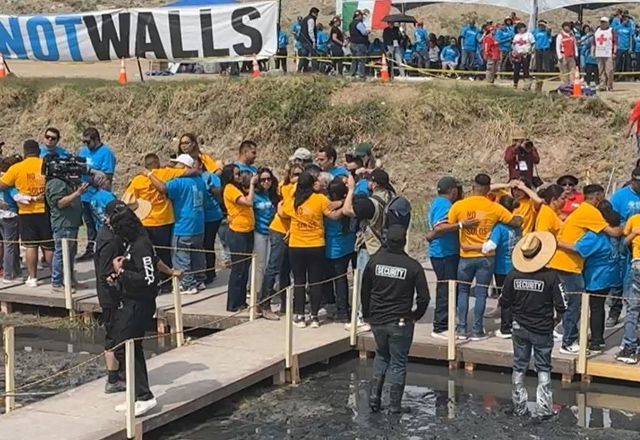 Migrantes mexicanos e hispanos se reencontraron por seis minutos sobre el Río Bravo, en la frontera entre El Paso, Texas, y Ciudad Juárez, Chihuahua, en el décimo evento llamado "Hugs not Walls (BN