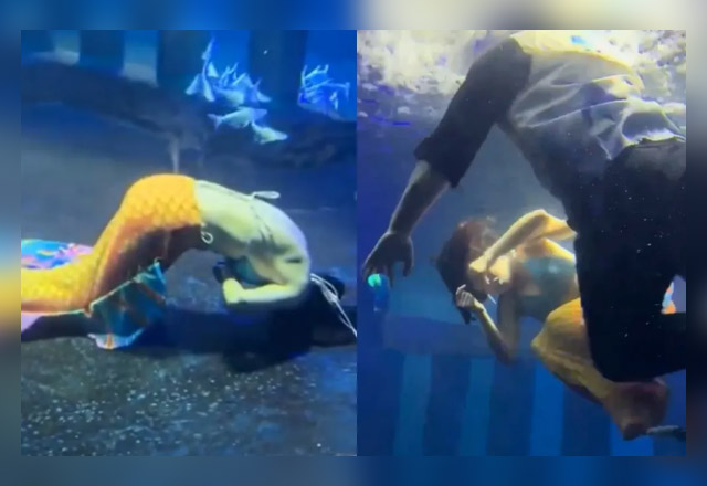 Un terrible incidente fue captado en video durante un espectáculo acuático en China, donde una artista disfrazada de sirena se desmayó en el interior de una pecera gigante, quedando inmóvil bajo e