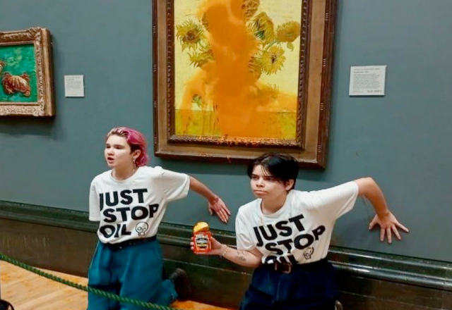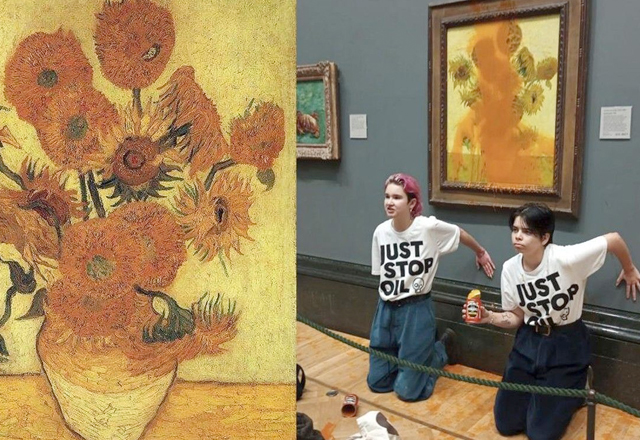Este viernes, dos activistas de la organización Just Stop Oil arrojaron una lata de sopa de tomate sobre el famoso cuadro "Los Girasoles", de Vincent Van Gogh, en la Galería Nacional de Londres. En