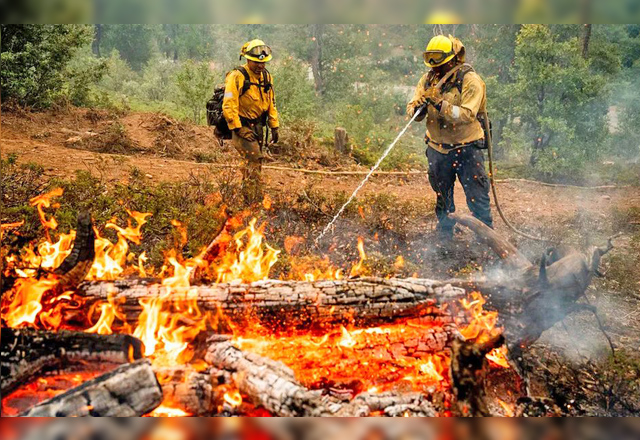 Más de 2 mil 500 bomberos batallan contra un salvaje incendio forestal cerca del Parque Nacional Yosemite, en California, Estados Unidos, al tiempo que miles de residentes de la zona están siendo ev