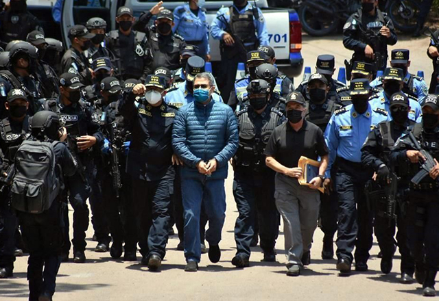 La extradición a EU del ex presidente hondureño Juan Orlando Hernández se inició este jueves con su traslado, esposado de manos, en un helicóptero a la Base Aérea Hernán Acosta Mejía, en el su