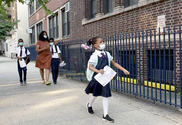 Las escuelas públicas de la ciudad de Nueva York reanudaron clases este lunes por primera vez desde el estallido de la pandemia de coronavirus, ofreciendo un experimento de aprendizaje presencial dur