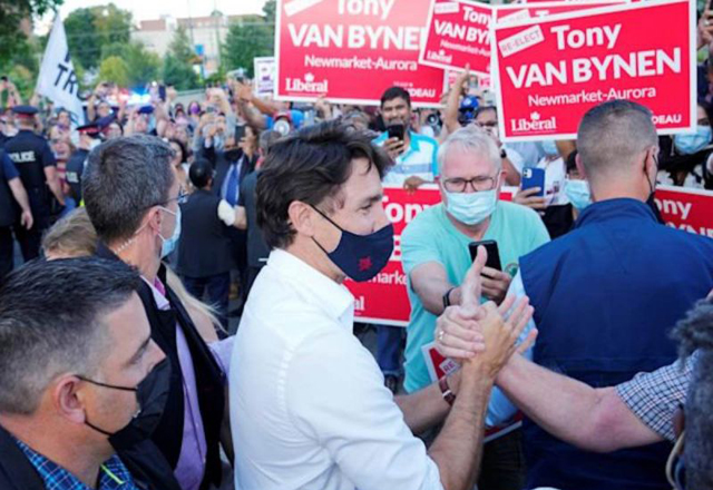 El primer ministro de Canadá, Justin Trudeau, que aspira a un tercer mandato en las elecciones anticipadas de este mes, fue blanco de la ira de un manifestante que le lanzó piedras durante un acto d