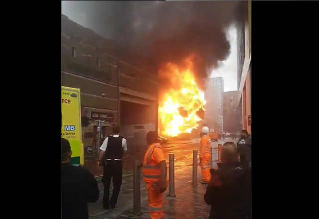 Una larga columna de humo, acompañada de explosiones, es lo que se registra en la estación de Metro y trenes Elephant and Castle, en Londres, Inglaterra, donde los medios locales reportan la asisten